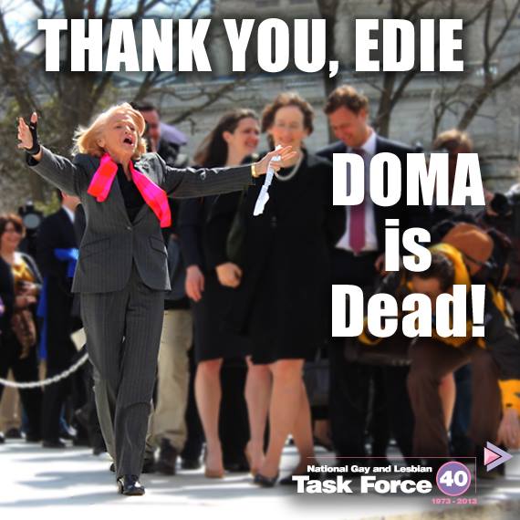 What a day! Mark your calendars: 6-26-13 is our new anniversary. And it’s a joyful one. One that makes our hearts burst with pride, which is a wonderful contrast from the other anniversaries we keep – like the anniversary of our martyrs Harvey Milk, Matthew Shepard and Brandon Teena, or the date of the Stonewall Riots.