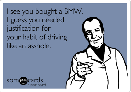 For instance, I can only determine that the driver of a BMW is only an asshole while he/she is in their car and on the Palmetto. However, I cannot assert with certainty that he/she is an asshole outside of their car (even though we all know they are most likely an even bigger asshole on foot).